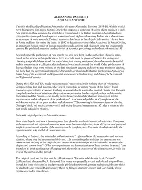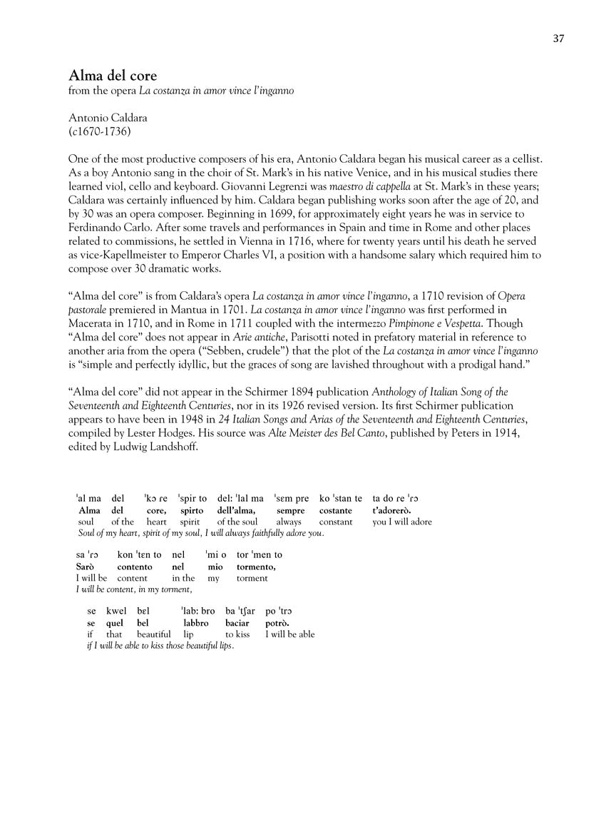 Contents: ANONYMOUS: Nina • O leggiadri occhi belli • Pieta, Signore! • BONONCINI: Non posso disperar • Per la gloria d'adorarvi • CACCINI: Amarilli • CALDARA: Alma del core • Sebben, crudele • Come raggio di sol • CARISSIMI: Vittoria, vittoria! • CAVALLI: Delizie contente • CESTI: Intorno all'idol mio • DURANTE: Danza, danza • Vergin, tutt'amor • GIORDANI: Caro mio ben • GLUCK: O del mio dolce ardor • LEGRENZI: Che fiero costume • LOTTI: Pur dicesti, o bocca bella • MARCELLO: Quella fiamma che m'accende • MONTEVERDI: Lasciatemio morire! • PAISIELLO: Nel cor piu non mi sento • PARISOTTO: Se tu m'ami • A SCARLATTI: Gia il sole dal Gange • Le violette • O cessate di piagarmi • Se Florindo e fedele • Sento nel core • TORELLI: Tu lo sai