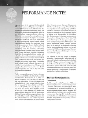 Bach's intermediate level little preludes are gems to be played for pure enjoyment, for any recital, or as steps toward the more challenging Well-Tempered Clavier. Contains extensive discussion and examples on Baroque ornamentation.