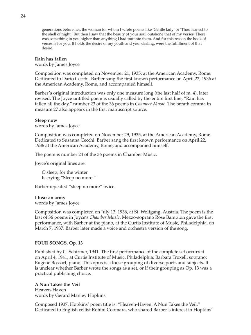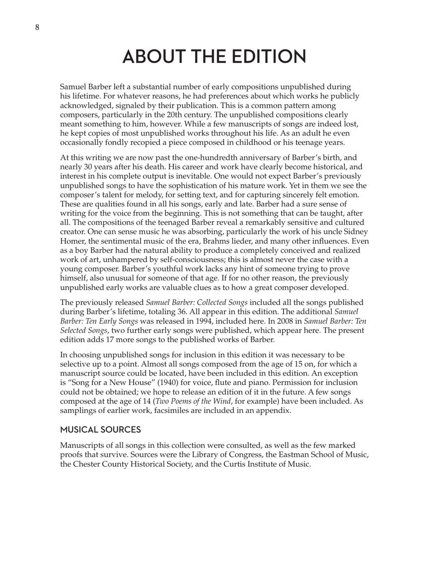 3 First published in Samuel Barber: Ten Selected Songs (2008)