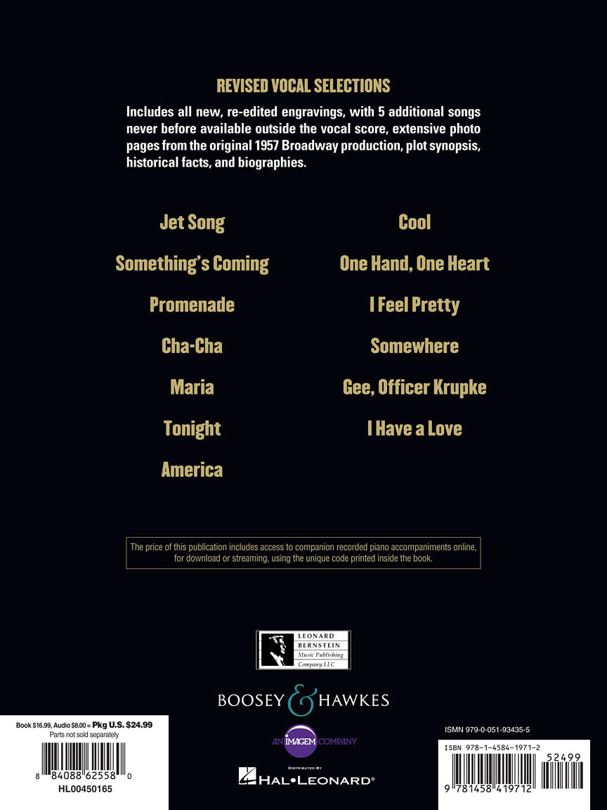 Bernstein West Side Story - Vocal Selections with Piano Accompaniment Recording