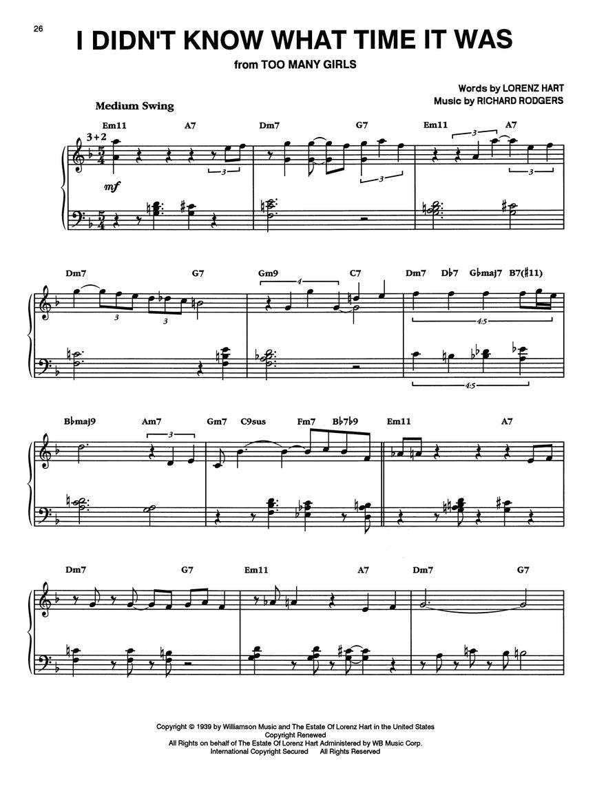 Awarded Berklee College of Music's Best All-Around Musician award while still a junior in high school, young star Brad Mehldau has been rising ever since. This collection features note-for-note transcriptions of six songs brilliantly interpreted by this jazz piano man: Bewitched • I Didn't Know What Time It Was • Nobody Else but Me • Prelude to a Kiss • Sehnsucht • Unrequited. Includes a biography and a discography.
