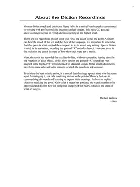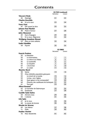 Contents: BERLIOZ: Villanelle • BIZET: Chanson d'avril • Guitare • Ouvre ton coeur • CHABRIER: Les cigales • Villanelle des petes canards • CHAUSSON: Hebe • Le charme • Le colibri • Le temps des lilas • DEBUSSY: Beau soir • Les cloches • Mandoline • Noel des enfants qui n'ont plus de maisons • DUPARC: Chanson triste • La vie anterieure • Lamento • FAURE: Apres un reve • Automne • Chanson d'amour • Clair de lune • Lydia • Mandoline • Notre amour • FRANCK: Nocturne • GOUNOD: L'absent • O ma belle rebelle • Venise • HAHN: A Chloris • Offrande • Si mes vers avaient des ailes • D'INDY: Madrigal • KOECHLIN: Si tu le veux • LISZT: Oh! quand je dors • MARTINI: Plaisir d'amour • MASSENET: Nuit d'Espagne • Si tu veux, Mignonne • MOZART: Dans un bois solitaire • PALADILHE: Psyche • POULENC: Le Bestiaire • RAVEL: Sainte • Cinq melodies populaires grecques • ROUSSEL: Le bachelier de Salamanque • Sarabande • SAINT-SAENS: Aimons-nous • L'attente • SATIE: Je te veux • La statue de bronze • SEVERAC: Les hiboux • philis • VIARDOT: Fleur dessechee