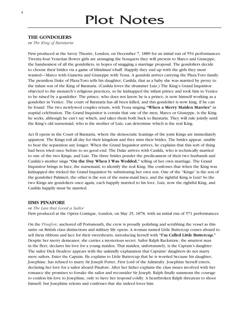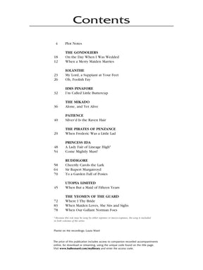 Contents: THE GONDOLIERS: On the Day When I Was Wedded, When a Merry Maiden Marries • IOLANTHE: My Lord, a Suppliant at Your Feet, Oh, Foolish Fay • HMS PINAFORE: I'm Called Little Buttercup • THE MIKADO: Alone, and Yet Alive • PATIENCE: Silver'd Is the Raven Hair • THE PIRATES OF PENZANCE: When Frederic Was a Little Lad • PRINCESS IDA: A Lady Fair of Lineage High, Come Mighty Must! • RUDDIGORE: Cheerily Carols the Lark, Sir Rupert Murgatroyd, To a Garden Full of Posies • UTOPIA LIMITED: When But a Maid of Fifteen Years • THE YEOMEN OF THE GUARD: Were I Thy Bride, When Maiden Loves, She Sits and Sighs, When Our Gallant Norman Foes