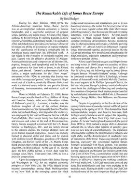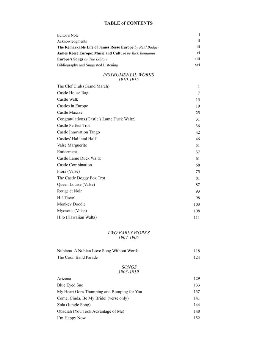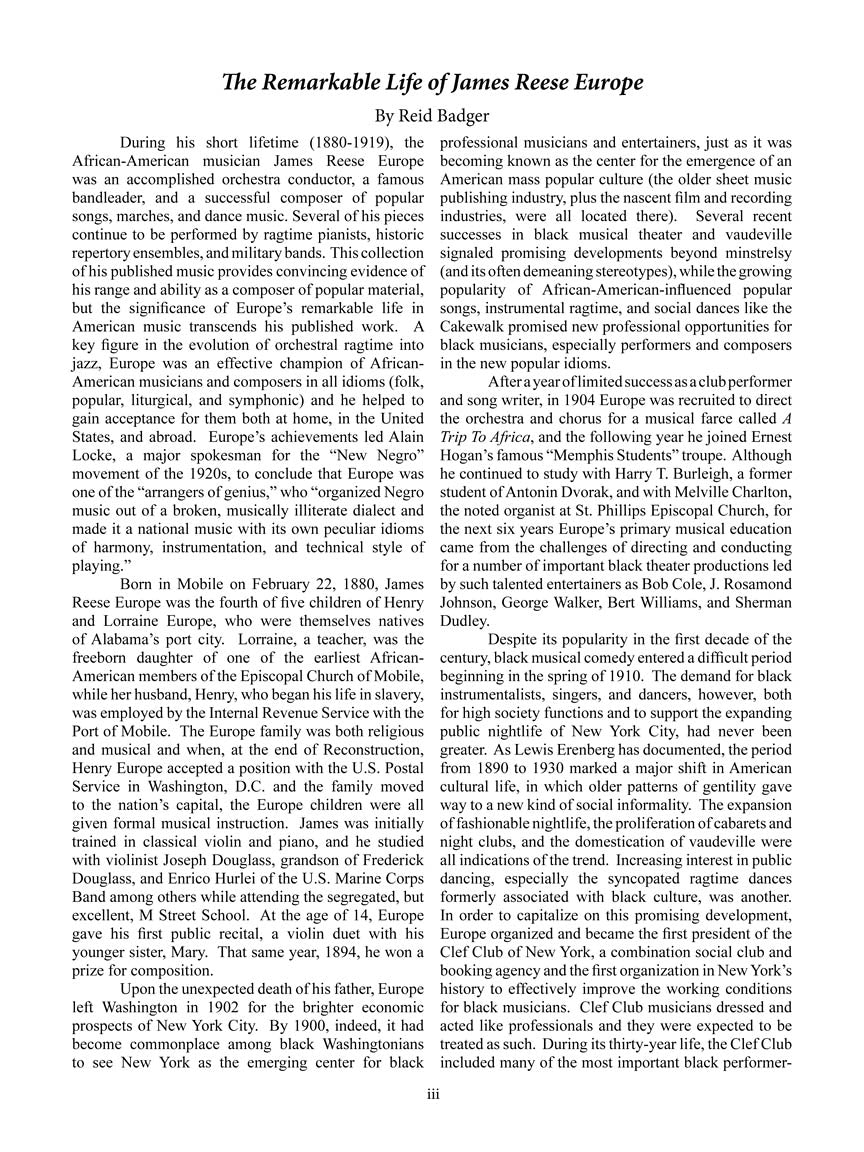 Europe, James Reese - Music Of - Solo Piano & Voice and Piano
