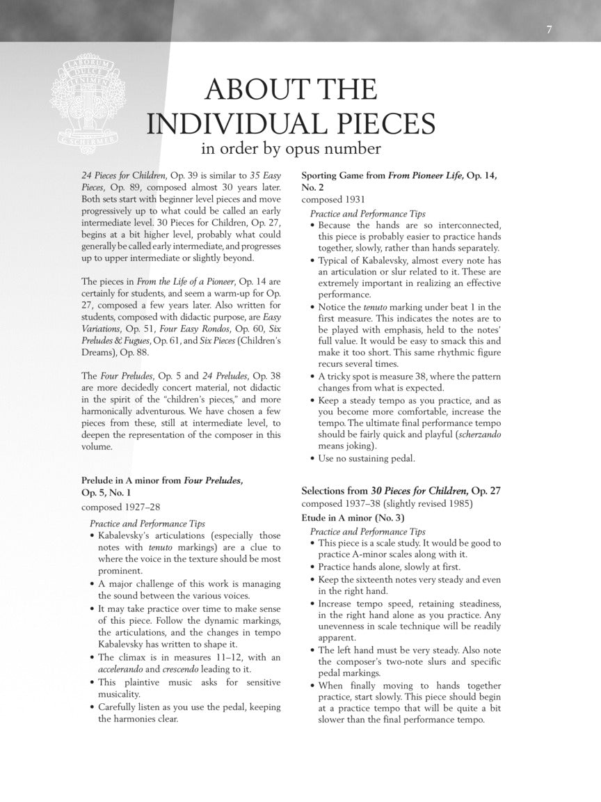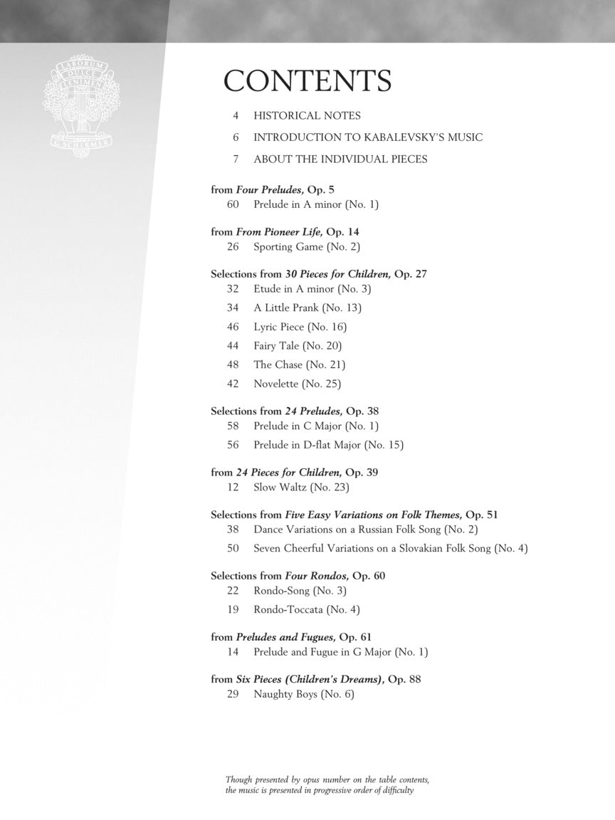 Kabalevsky - Selected Piano Pieces - Schirmer Performance Editions