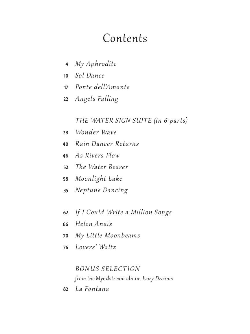 15 selections from the album by new age composer/pianist David Lanz, plus a bonus selection and an introduction by Lanz. All songs have been transcribed for piano solo and approved by the artist. Includes: Angels Falling • Helen Anais • If I Could Write a Million Songs • Lovers' Waltz • My Aphrodite • My Little Moonbeams • Ponte Dell'amante • Sol Dance • and The Water Sign Suite (In 6 parts).