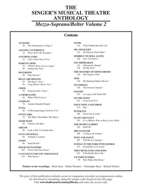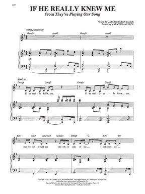Contents: ALLEGRO: The Gentleman Is a Dope • ANYONE CAN WHISTLE: There Won't Be Trumpets • ANYTHING GOES: I Get a Kick Out of You • BABES IN ARMS: I Wish I Were in Love Again, Johnny One Note • BALLROOM: Fifty Percent • BELLS ARE RINGING: The Party's Over, Long Before I Knew You • CHESS: Someone Else's Story • A CHORUS LINE: What I Did for Love • COMPANY: Another Hundred People • EVITA: I'd Be Surprisingly Good for You • FUNNY GIRL: The Music That Makes Me Dance • GOOD NEWS: I Want to Be Bad • GREASE: Look at Me, I'm Sandra Dee • GUYS AND DOLLS: Adelaide's Lament • GYPSY: Small World • HOUSE OF FLOWERS: I Never Has Seen Snow • I CAN GET IT FOR YOU HOLESALE: Who Knows • MAME: If He Walked Into My Life • ME AND JULIET: We Deserve Each Other • MERRILY WE ROLL ALONG: Now You Know • LES MISÉRABLES: I Dreamed a Dream, On My Own • THE MYSTERY OF EDWIN DROOD: The Wages of Sin • NINE: My Husband Makes Movies • NO STRINGS: The Sweetest Sounds • OLIVER!: As Long as He Needs Me • ON THE TOWN: I Can Cook Too • ONCE UPON A MATTRESS: Shy • PETER PAN: Never Never Land • PLAIN AND FANCY: It's a Helluva Way to Run a Love Affair • THE SECRET GARDEN: Hold On • SHE LOVES ME: A Trip to the Library • SONG AND DANCE: Tell Me on a Sunday • SUNDAY IN THE PARK WITH GEORGE: Everybody Loves Louis • THEY'RE PLAYING OUR SONG: If He Really Knew Me • VICTOR/VICTORIA: Paris Makes Me Horny