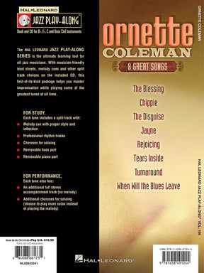 For use with all Bb, Eb, Bass Clef, and C instruments, the Jazz Play-Along series is the ultimate learning tool for all jazz musicians. With musician-friendly lead sheets, melody cues, and other split-track choices on the included CD, this first-of-its-kind package makes learning to play jazz easier than ever before. FOR STUDY, each tune includes a split track with: • Melody cue with proper style and inflection • Professional rhythm tracks • Choruses for soloing • Removable bass part • Removable piano part. FOR PERFORMANCE, each tune also has: • An additional full stereo accompaniment track (no melody) • Additional choruses for soloing. INCLUDES: The Blessing • Chippie • The Disguise • Jayne • Rejoicing • Tears Inside • Turnaround • When Will the Blues Leave.