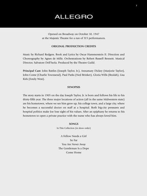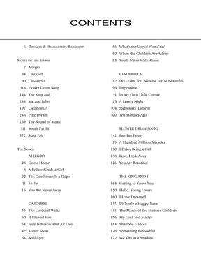 It's a grand collection fit for two of the most influential and successful composers of the modern era! This folio presents 70 songs from 11 of their blockbusters, complete with background information on each show and a great bio of this famous team. It also features an index by show and an alphabetical song title index. Songs include: Bali Ha'i • The Carousel Waltz • Climb Ev'ry Mountain • Dites-Moi (Tell Me Why) • Do-Re-Mi • Edelweiss • A Fellow Needs a Girl • Getting to Know You • A Hundred Million Miracles • I Cain't Say No • I Enjoy Being a Girl • I'm Gonna Wash That Man Right Outa My Hair • It Might as Well Be Spring • It's a Grand Night for Singing • June Is Bustin' Out All Over • Kansas City • My Favorite Things • Oh, What a Beautiful Mornin' • Oklahoma • Our State Fair • Shall We Dance? • Some Enchanted Evening • The Surrey with the Fringe on Top • There Is Nothin' like a Dame • You'll Never Walk Alone • You've Got to Be Carefully Taught • and more.