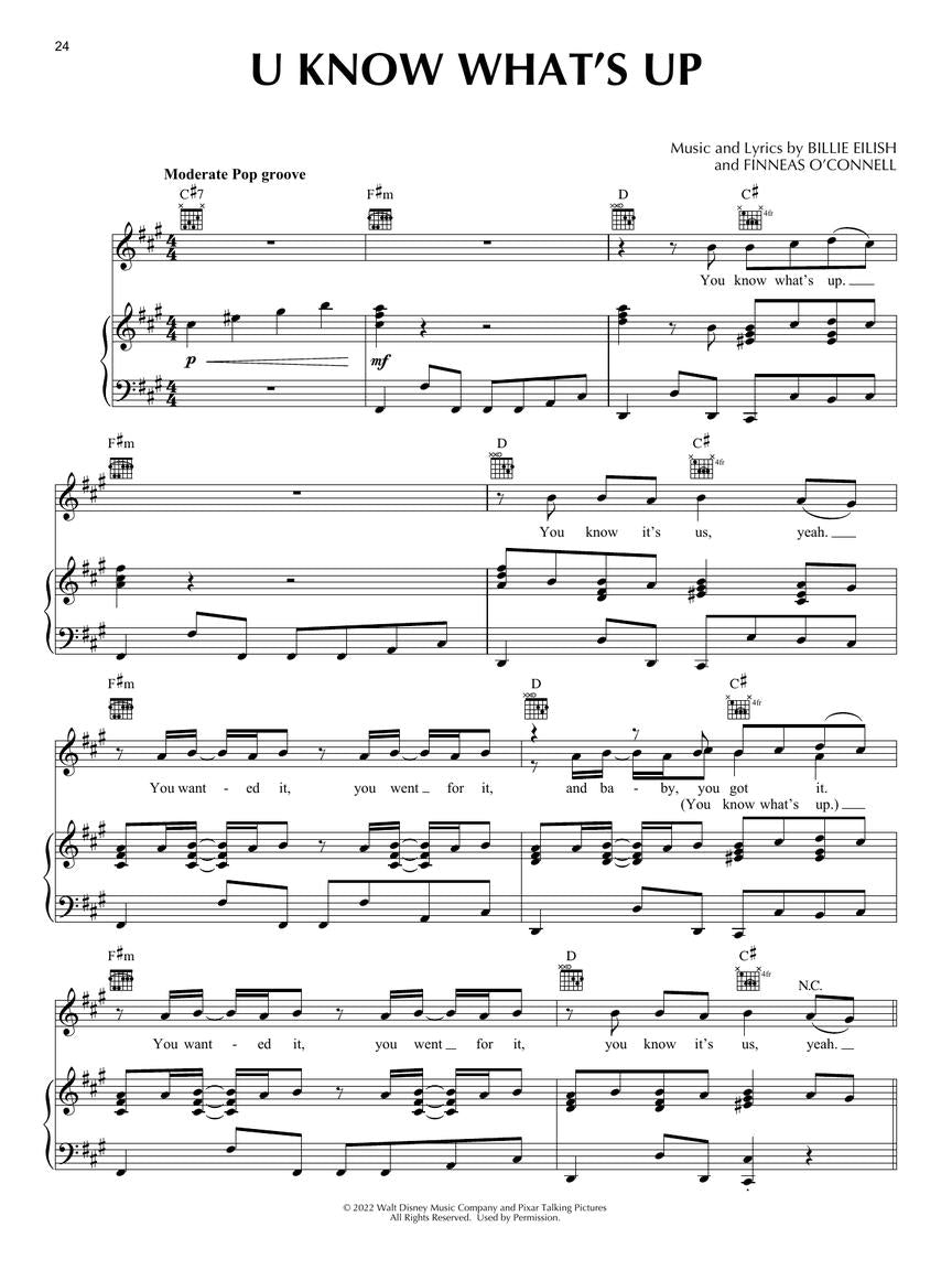 This souvenir folio features eight pages of full-color scenes from the Disney/Pixar movie plus ten songs from the soundtrack arranged for piano/vocal/guitar: Keeping the Panda • Let Your Inner Panda Out • Making It Right • Nobody like U • 1 True Love • Panda-monium • Red Moon Ritual • Temple Duties • Turning Red • U Know What's Up.